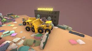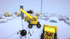 You can hop in and out of different construction vehicles, parkour over mounds of shifting junk, push scraps to form barriers or knock them down, run over other contestants, or smash them into oblivion with the wrecking ball.